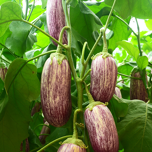 该品种植株长势强壮,座果性较好,果实颜色紫色,带白色相间条纹。