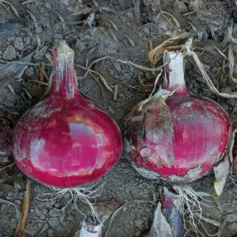 鳞茎偏扁圆形至高桩圆球形,较硕大、紧实,整齐度较好,外皮红色。