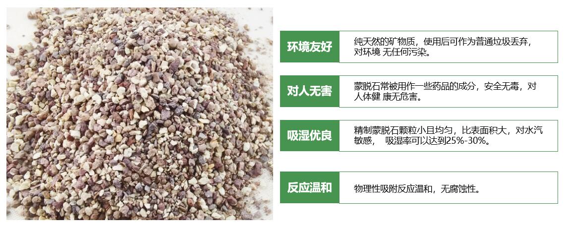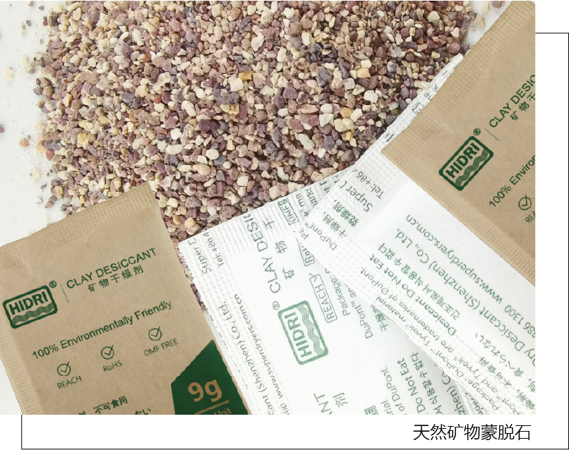 HIDRI矿物干燥剂是一种以天然矿物蒙脱石为原材料、环保材料为包装的绿色环保型干燥剂。HIDRI矿物干燥剂对空气中的游离水汽极其敏感,具有良好的水汽吸附功能。