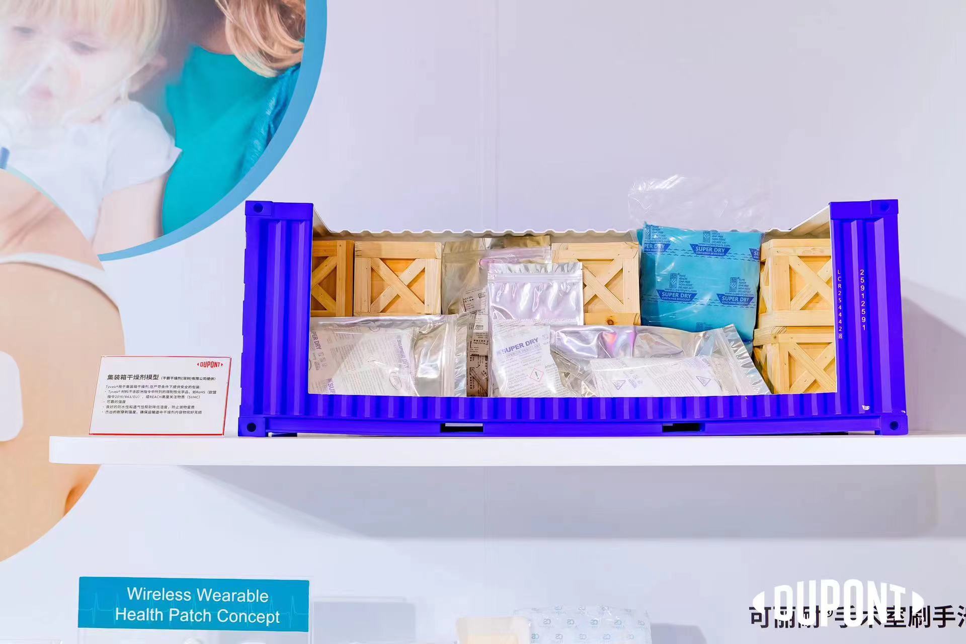 干霸干燥剂作为杜邦TMTYVEK®集装箱干燥剂包装应用战略合作伙伴,应杜邦公司邀请,将产品第二次展示在了进博会的舞台,包括SUPER DRY系列氯化钙干燥剂、HIDRI系列硅胶干燥剂和矿物干燥剂,吸引了不少国内外企业的关注。同时,干霸公司也第一次派出了代表团赴进博会参观学习。