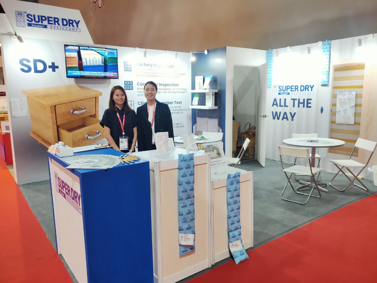 在印度尼西亚国际家具展上,SUPER DRY隆重推出了创新的家具保护解决方案,以其高效的吸湿防潮功能和卓越的品质,赢得了现场观众的广泛关注和一致好评。SUPER DRY团队还与当地家具制造商和零售商进行了深入交流,建立了密切的合作关系,为他们提供优质的产品防护和专业服务。
