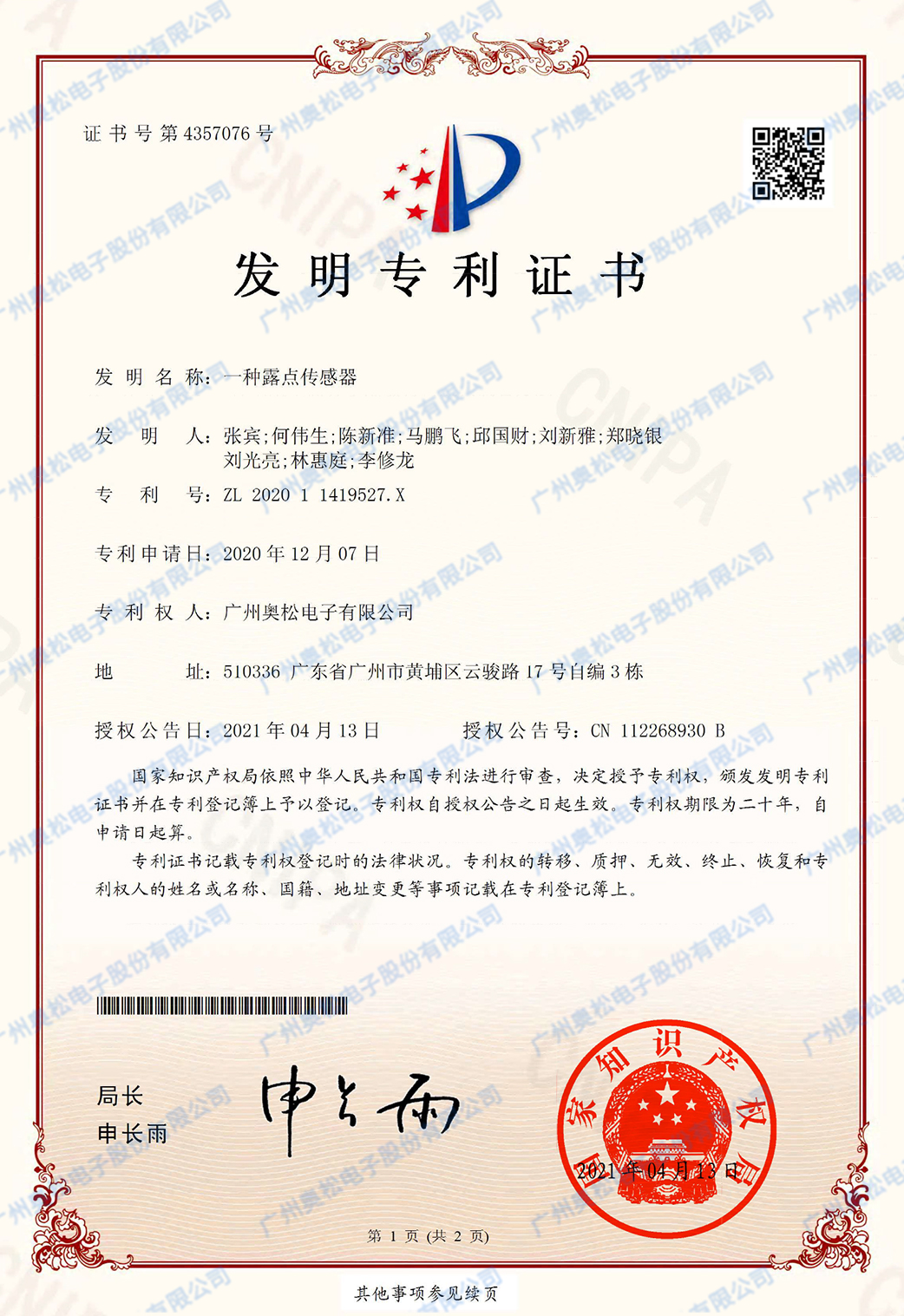 一种露点传感器