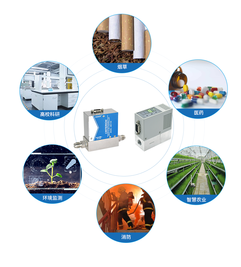 AMC1100和AMC2000可广泛应用于高校科研中的分析仪器、科学仪器、精细化工生产线中、镀膜设备、高端制造设备、配气系统或装置、定制化自动设备,以及消防、环境监测、烟草、智慧农业、食品、医药等行业的质量流量控制监测。